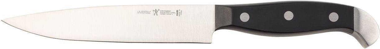 The Henckels Statement knife is perfect for tackling detailed kitchen tasks with ease. Honed for long-lasting sharpness, the fine-edge blade boasts precision cutting. Peel potatoes, remove blemishes, and create beautiful garnishes with this small, versatile knife.Fabricated from durable, high-quality stainless steel, Statement's single-piece, stamped blade construction is lighter than forged knives. Along with the full tang, this encourages maximum maneuverability. The traditional triple-rivet handles are curved for comfort and balance while the stainless steel endcap adds aesthetic appeal to your block display. Each time you cook, you will want to reach for this useful knife set. Henckels makes essential kitchen tools every home chef needs. From steak knives to spatulas, each product boasts high quality at an exceptional value. Created in 1895 by Zwilling J.A. Henckels, this value-driven brand guarantees the same durability, design and ease of use for which the global company is known. Equip your kitchen with expertise with Henckels.