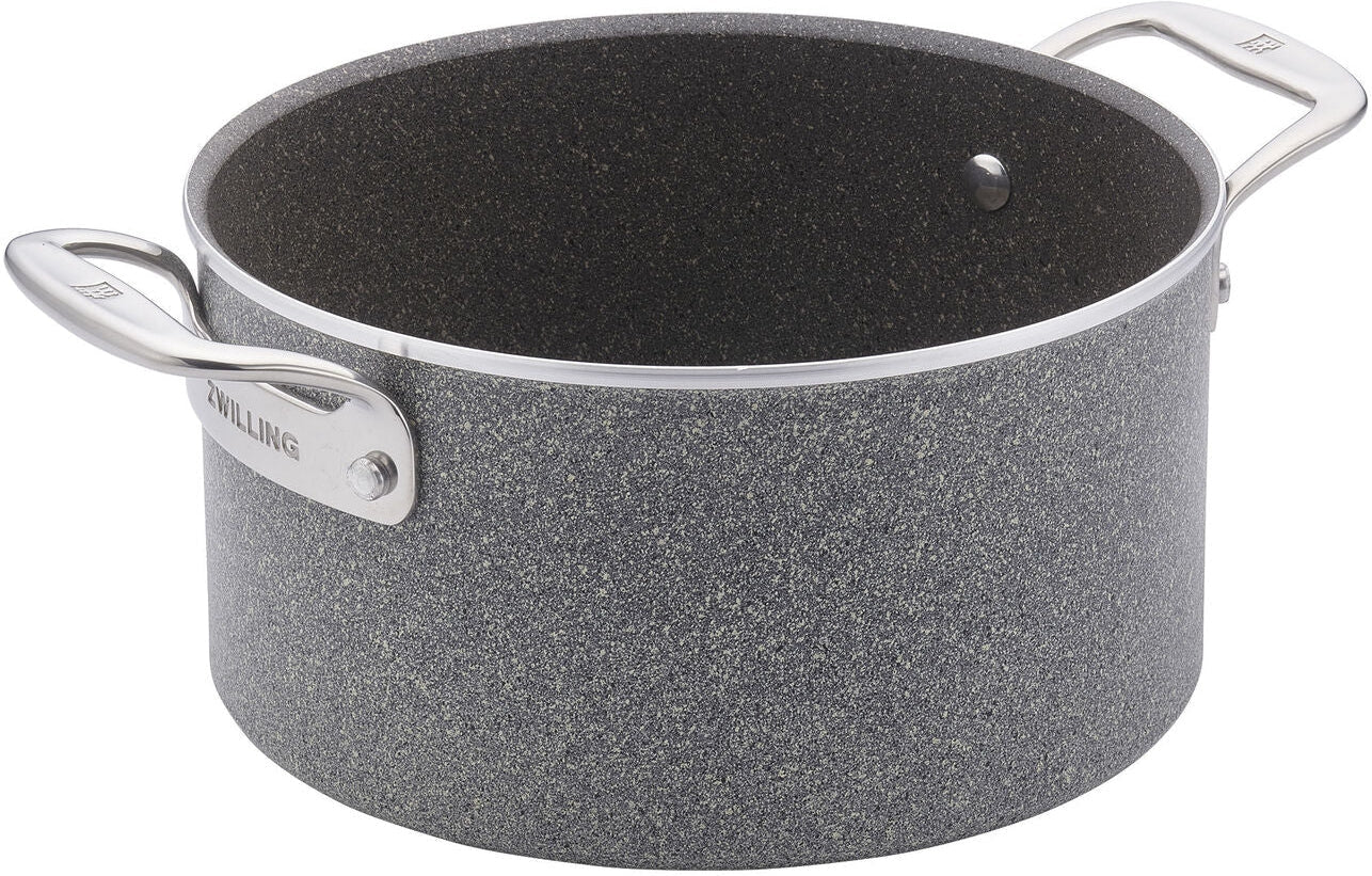ZWILLING Vitale combines the best of Italian design with exceptional German engineering so you can enjoy high-performance, hassle-free cooking. Perfectly proportioned for cooking for one, the 8-inch fry pan is handy for frying eggs, toasting nuts, and cooking sandwich melts. You can expect long-lasting use with this beautifully crafted, Italian-made cookware designed for everyday cooking The ultra-durable, 3-layer Granitium nonstick coating is constructed with ceramic particles and reinforced with hardening speckles for increased scratch and wear resistance. Combined with a fast-heating thick aluminum body, Vitale boasts superior heat retention and distribution for even cooking. Scratch resistant, Vitale is safe to use with metal utensils. Enjoy oven safe cooking up to 500°F and stovetop cooking on gas, ceramic, electric, and halogen stovetops. The tempered glass lids lock in moisture and let you monitor the cooking process. Boasting spill-free pouring rims and maximum comfort and maneuverability thanks to the ergonomic, V-shaped stainless-steel handles, ZWILLING Vitale is conveniently dishwasher safe. Roomy 6-quart Dutch oven ideal for braising and stewing; perfect for one-pot dinners.
