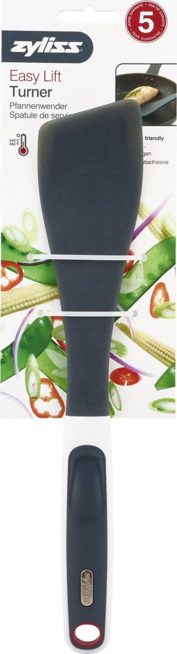 The Zyliss Easy Lift Silicone Stir Fry Spatula is designed with a tapered front edge to get under foods making it perfect for wok cooking, skillets, and griddles. It is also heat resistant up to 460 degrees F and safe on coated cookware.
