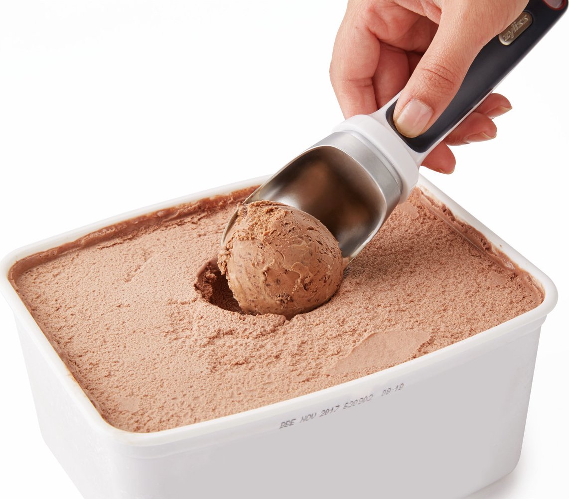 The Zyliss Right Scoop has a superior design which makes it well equipped to dig into even the hardest frozen confection. You can use it on ice cream, sorbet or frozen yogurt with ease! The scoop shape also creates an appetizing presentation. The Right Scoop comes with a non-slip ergonomic handle that keeps your hands out of the cold and free from strain. Plus, the handle is treated so that it will not yellow with age.
